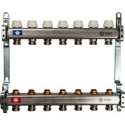 Коллекторные блоки STOUT производятся в Италии под тщательным контролем, проходя многочисленные тесты и сертификацию оборудования. Благодаря этому распределительные коллекторы STOUT обладают рядом преимуществ, среди которых надежность конструкции, качественные материалы, оптимальная комплектация блока, варианты исполнения для теплого пола и для радиаторной разводки. Назначение коллекторных блоков- эффективно распределить теплоноситель по отопительным контурам.