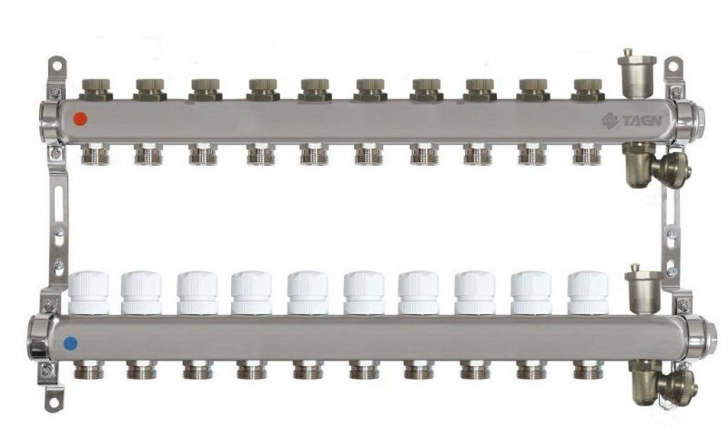Коллекторная группа (нерж) 1x3/4x10 вых. (рег.клапаны, авт. воздух-к, дренаж. клапан, рег.кронштейны) TAEN