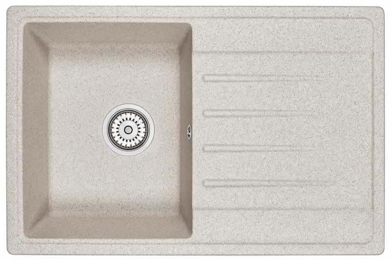 Размер мойки составляет 74 × 44 см, а глубина чаши — 18 см. В комплект поставки входят необходимые крепления и уплотнитель.