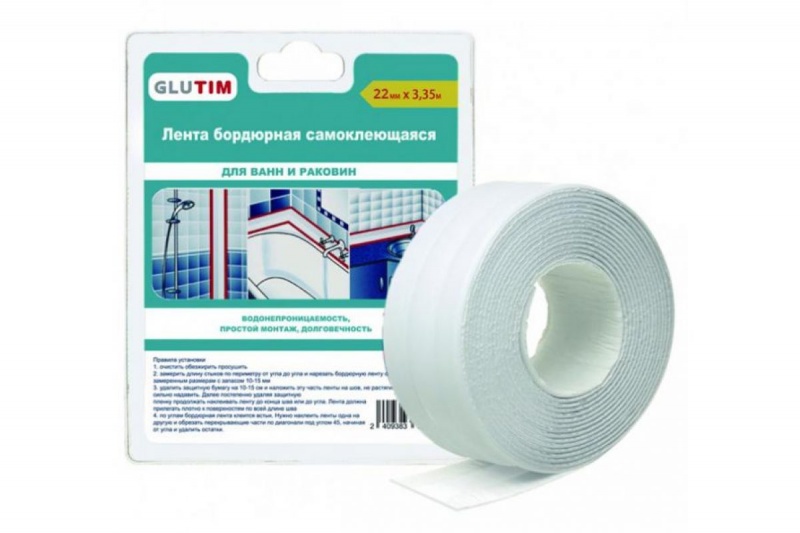 Бордюрная лента используется для герметизации ванн, раковин, душевых кабин, джакузи, кухонь.