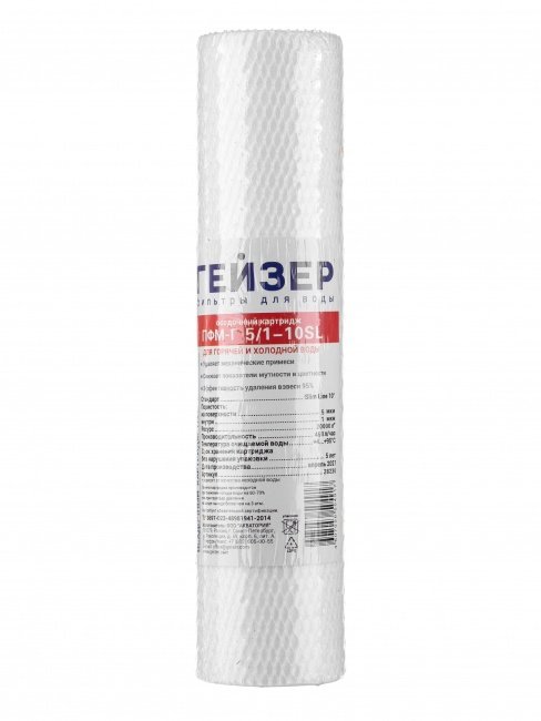Картридж ПФМ-Г 5/1 10SL предназначен для очистки горячей воды от нерастворимых примесей. В отличие от PP обладают градиентной пористостью: диаметр поры уменьшается при движении воды внутрь картриджа, позволяя работать всему объему фильтрующего материала. У картриджей есть модификации для горячей воды. Не восстанавливаются и не регенерируется.