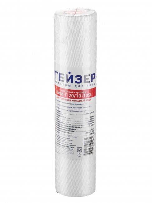 Картридж ПФМ-Г 20/10 10SL предназначен для очистки горячей воды от нерастворимых примесей. В отличие от PP обладают градиентной пористостью: диаметр поры уменьшается при движении воды внутрь картриджа, позволяя работать всему объему фильтрующего материала. У картриджей есть модификации для горячей воды. Не восстанавливаются и не регенерируется.