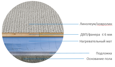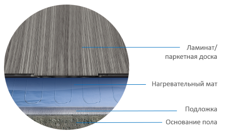 Укладывается под быстро устанавливаемые декоративные покрытия - идеальный теплый пол под ламинат, паркетную доску, линолеум или ковролин.