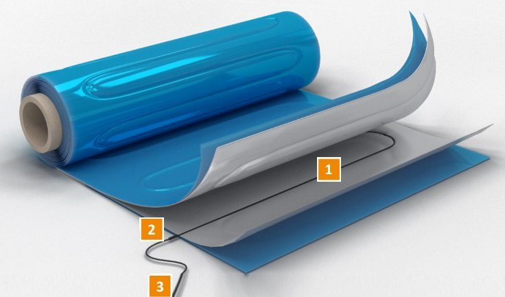 Алюминиевая фольга равномерно распределяет тепло нагревательного кабеля по всей поверхности.